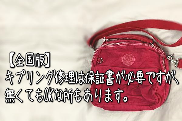 【全国版】キプリング修理は保証書が必要ですが、無くてもOKな所もあります。